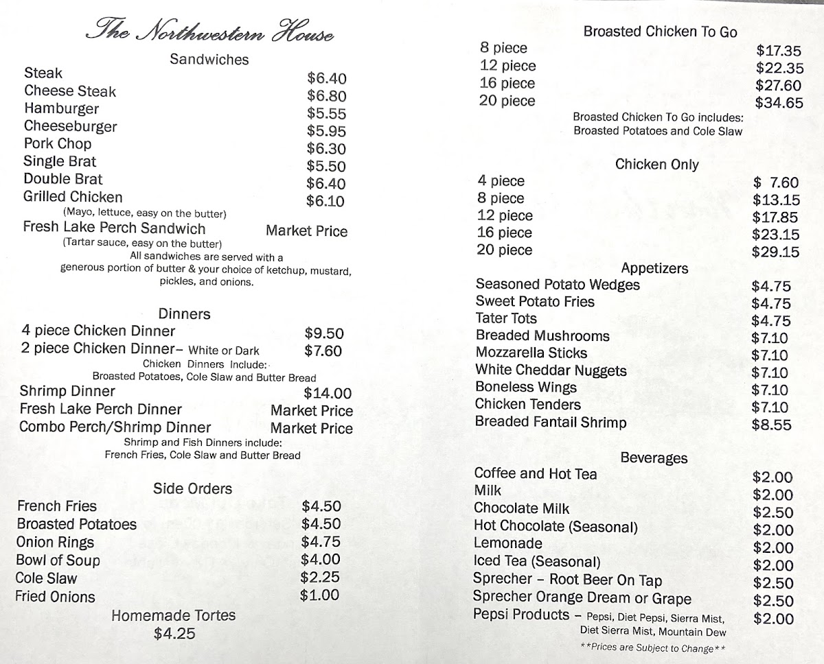 When you step into The Northwestern House Menu, you're in for a delightful culinary journey that showcases the heart of Sheboygan. Nestled at 1909 Union Ave, this cozy gem offers a variety of dishes that range from hearty comfort food to lighter, fresh options. Whether you're craving a satisfying sandwich, a flavorful salad, or a perfectly seared steak, there's something here to please every palate. With a welcoming atmosphere and a menu that caters to both traditional tastes and modern twists, The Northwestern House invites you to explore each dish with the perfect blend of local ingredients and timeless recipes. Take a seat and let the flavors take you on a memorable dining experience.